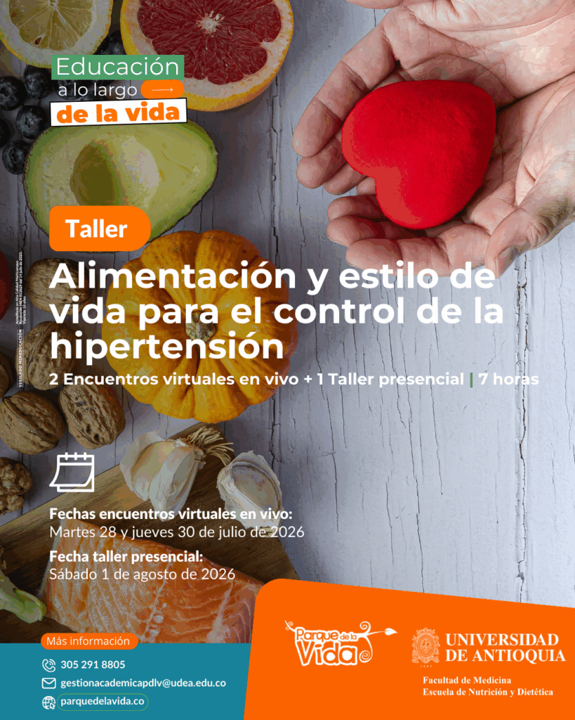 En este taller de Alimentación y estilo de la vida para el control de la hipertensión, busca Brindar herramientas teóricas y prácticas sobre la relación entre la alimentación y la hipertensión arterial, con énfasis en la prevención y el tratamiento nutricional, incorporando estrategias culinarias que favorezcan una alimentación saludable y sostenible.