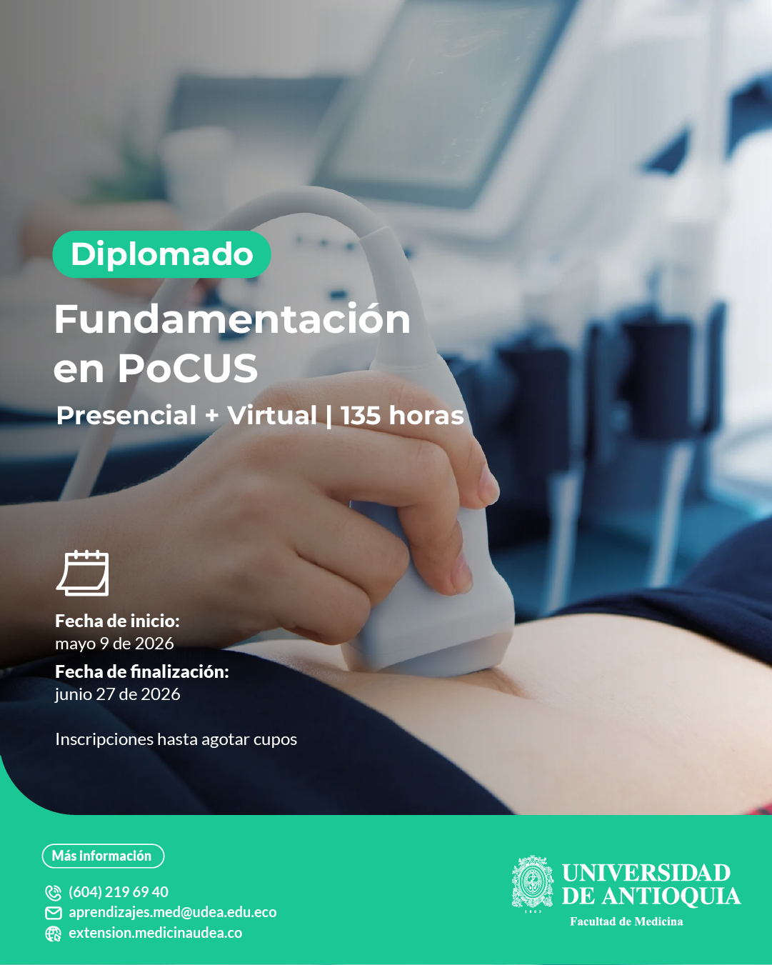 En este diplomado aprenderás a integrar la exploración clínica con PoCUS (Point of Care Ultrasound), convirtiendo los hallazgos semiológicos en imágenes que confirman o descartan diagnósticos al instante.