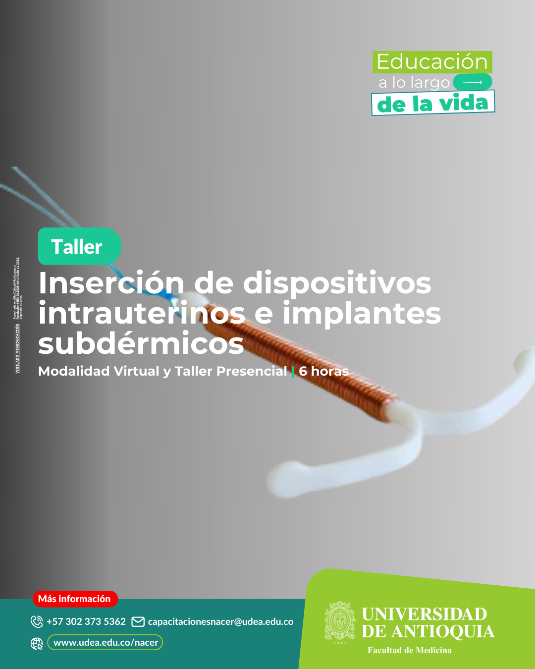 Este curso permite fortalecer las competencias en la inserción de dispositivos intrauterinos e implantes subdérmicos.